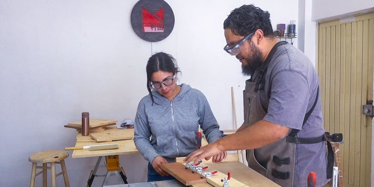 Cada proyecto esta diseñado para que puedas enriquecer tu experiencia y conocimiento en varios procesos necesarios para terminar tu mueble, el costo incluye materiales; puedes trabajar tu solo/a o con un acompañante (con costo extra, 1 mueble por pareja)